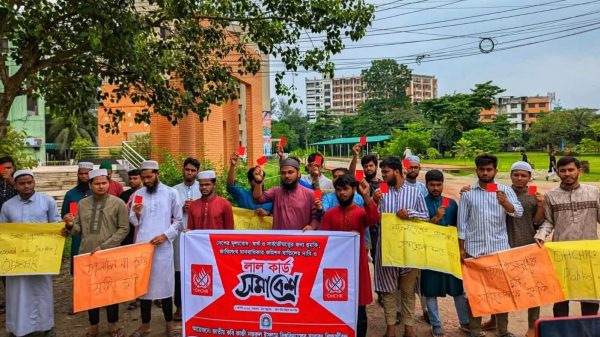 ঢাকায় জাতিসংঘ কমিশনের বিরুদ্ধে নজরুল বিশ্ববিদ্যালয়ে লাল কার্ড প্রতিবাদ