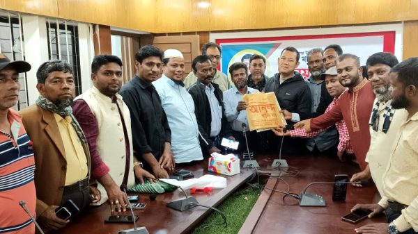 ধানের শীষ প্রতীকের মনোনীত প্রার্থী মনজুরুল ইসলাম মঞ্জুর সাথে সাংবাদিকদের কুশল বিনিময়।