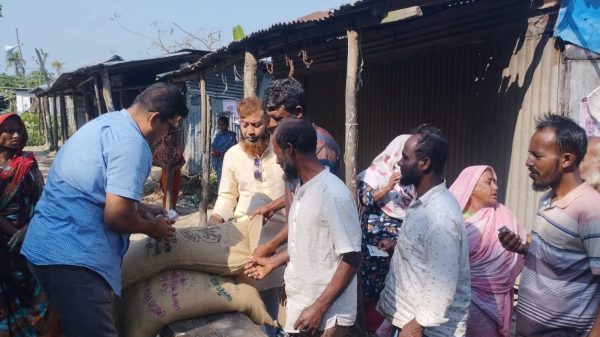 বেদে সম্প্রদায়ের ৩৪০ জেলে পরিবারে চাল বিতরণ।