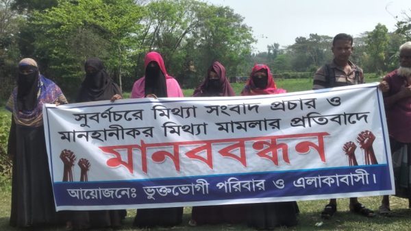 নোয়াখালীতে ৪ পরিবারের চলাচলের বাধা, প্রতিবাদে মানববন্ধন