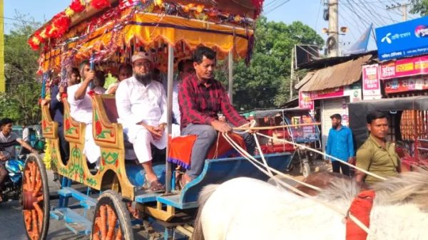 দিনাজপুরে ঘোড়ার গাড়িতে ১২ কিমি পথ পাড়ি দিয়ে অধ্যক্ষের রাজকীয় বিদায়