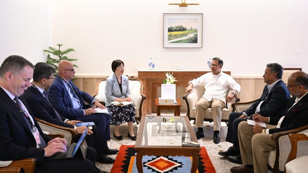 রাজধানীর তেজগাঁওয়ে প্রধানমন্ত্রীর কার্যালয়ে এশিয়ান ইনফ্রাস্ট্রাকচার ইনভেস্টমেন্ট ব্যাংক (এআইআইবি)-এর প্রেসিডেন্ট ঝু জিয়াই (Zou Jiayi)-এর সঙ্গে বৈঠক করেছেন প্রধানমন্ত্রী তারেক রহমান। শনিবার (৪ এপ্রিল) দুপুরে অনুষ্ঠিত এই গুরুত্বপূর্ণ বৈঠকে দ্বিপাক্ষিক সহযোগিতা, অবকাঠামো উন্নয়ন এবং ভবিষ্যৎ বিনিয়োগ নিয়ে আলোচনা হয় বলে জানা গেছে। বৈঠকে উপস্থিত ছিলেন অর্থ ও পরিকল্পনা মন্ত্রী আমীর খসরু মাহমুদ চৌধুরী এবং প্রধানমন্ত্রীর অর্থ বিষয়ক উপদেষ্টা ড. রাশেদ আল মাহমুদ তিতুমীর। এআইআইবি প্রেসিডেন্ট ঝু জিয়াই তিন সদস্যের একটি প্রতিনিধি দলের নেতৃত্ব দেন। চলতি বছরের ১৬ জানুয়ারি তিনি এশিয়ান ইনফ্রাস্ট্রাকচার ইনভেস্টমেন্ট ব্যাংকের প্রেসিডেন্ট হিসেবে দায়িত্ব গ্রহণ করেন। সংশ্লিষ্ট সূত্র জানিয়েছে, এই বৈঠক বাংলাদেশের অবকাঠামো খাতে বিদেশি বিনিয়োগ বৃদ্ধি এবং উন্নয়ন সহযোগিতা আরও জোরদারে গুরুত্বপূর্ণ ভূমিকা রাখবে।