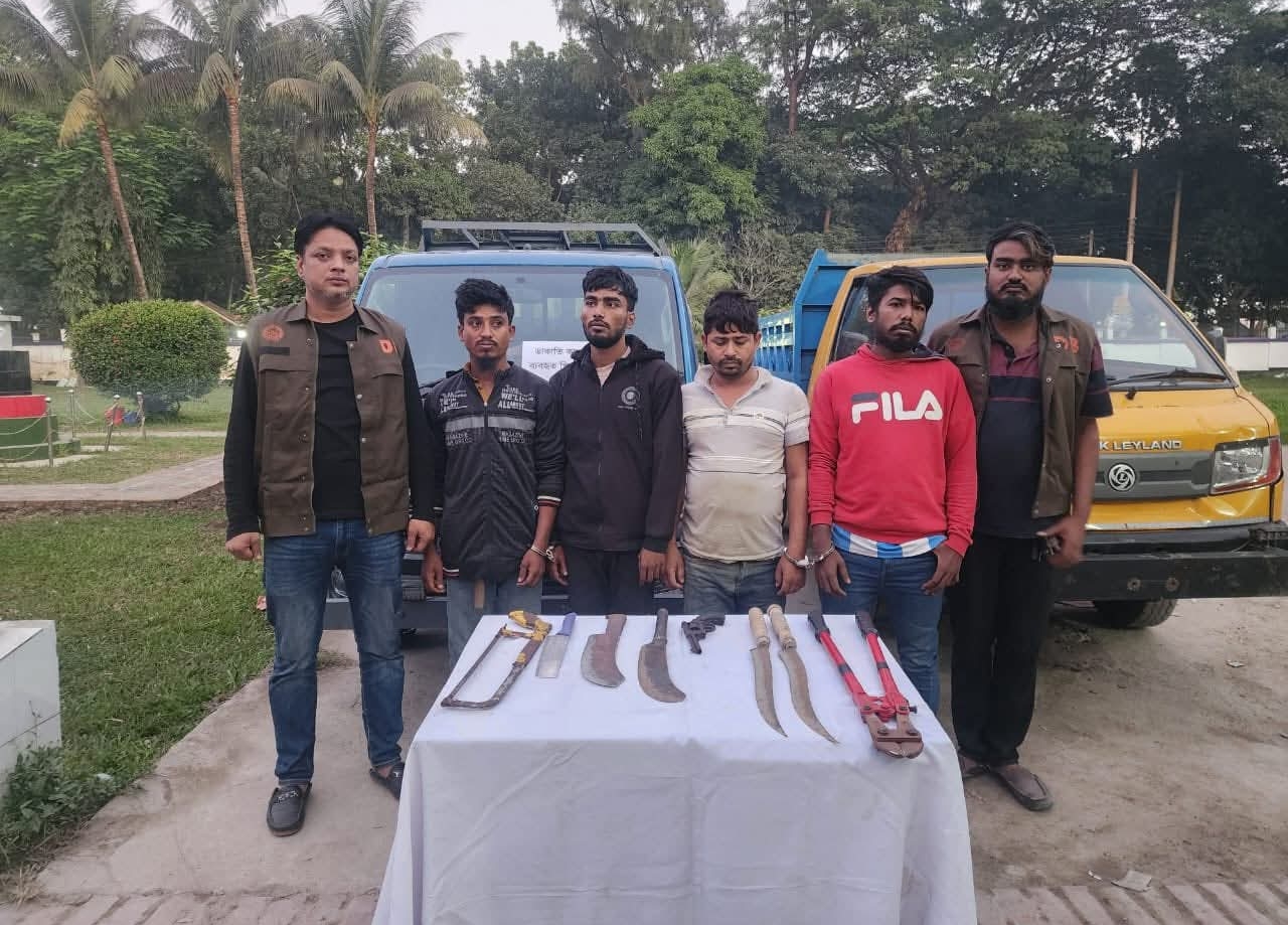 এ সময় ডাকাতিতে ব্যবহৃত দুটি পিকআপ, দেশীয় ধারালো অস্ত্রশস্ত্র এবং লাকসাম থেকে ডাকাতি হওয়া ৫টি গবাদি পশু উদ্ধার করা হয়।