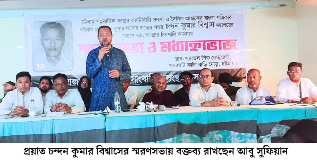 চট্টগ্রাম সাংবাদিক সংস্থার (চসাস) উদ্যোগে চট্টগ্রাম সাংবাদিক সংস্থার কার্যনির্বাহী সদস্য ও দৈনিক আজকের বাংলা পত্রিকার চট্টগ্রাম প্রতিনিধি তুষার দাসের শ্রদ্ধেয় শ্বশুর চন্দন কুমার বিশ্বাসের স্মরণে এক স্মরণসভা ও মধ্যাহ্নভোজের আয়োজন করা হয়। বৃহস্পতিবার (১০ এপ্রিল) দুপুর ১২টায় চট্টগ্রাম নগরীর সদরঘাট কালি বাড়ি মোড়স্থ স্যাডেল পিক রেস্টুরেন্টে এ অনুষ্ঠান অনুষ্ঠিত হয়।