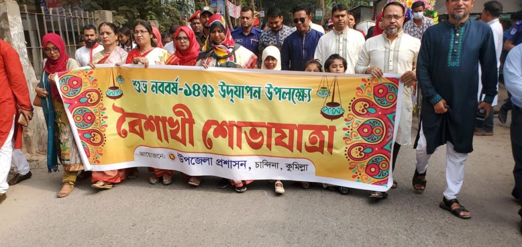 সোমবার (১৪ এপ্রিল) সকাল ৭টায় বৈশাখী মেলা উদ্বোধনের পর ৮টায় বৈশাখী শুভাযাত্রা করেন। তারপর ৯টায় চান্দিনা উপজেলা প্রশাসনের উদ্যোগে বাংলা গান পরিবেশনের মধ্য দিয়ে অনুষ্ঠিত হয় সাংস্কৃতিক অনুষ্ঠান।