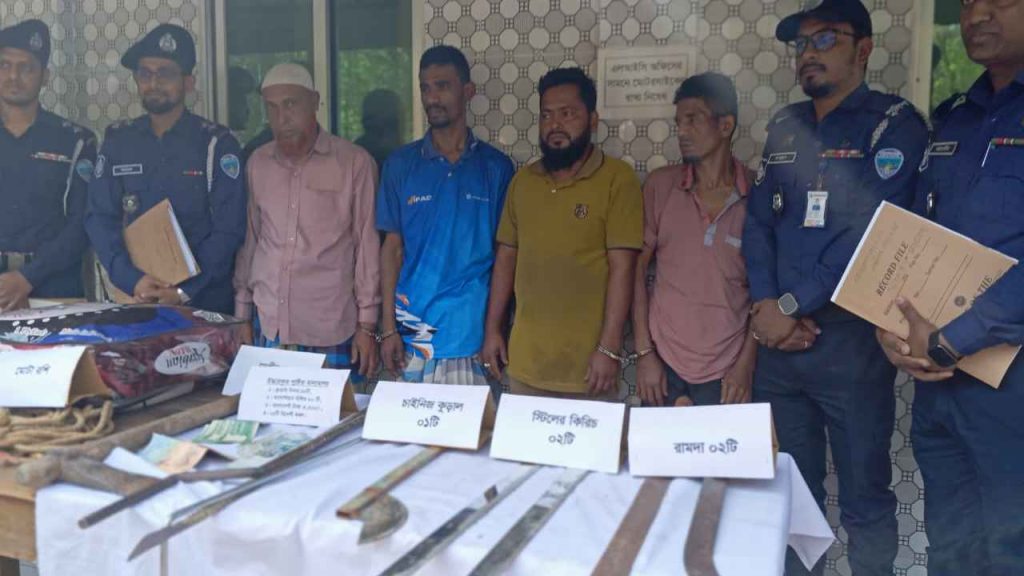 গ্রেফতার আসামিরা হলেন, চাঁদপুরের কচুয়া উপজেলার মনপুরা গ্রামের আব্দুল মান্নানের ছেলে মো. আব্দুল হান্নান (৩৫), লক্ষ্মীপুরের রায়পুর উপজেলার চরমোহনা (বাহাদুর বাড়ি) গ্রামের মৃত সিরাজ মোল্লার ছেলে মো. শরীফ হোসেন (৪৫), কুমিল্লার চান্দিনা উপজেলার নুরপুর (দোলাই নবাবপুর) গ্রামের তাজুল ইসলামের ছেলে মো. আলাউদ্দিন (৩৫) এবং একই উপজেলার জোরপুকুরিয়া (জামিরাপাড়া ভুঁইয়া বাড়ি) গ্রামের মৃত হাজী রমিজ উদ্দিনের ছেলে নজরুল ইসলাম (৬০)।