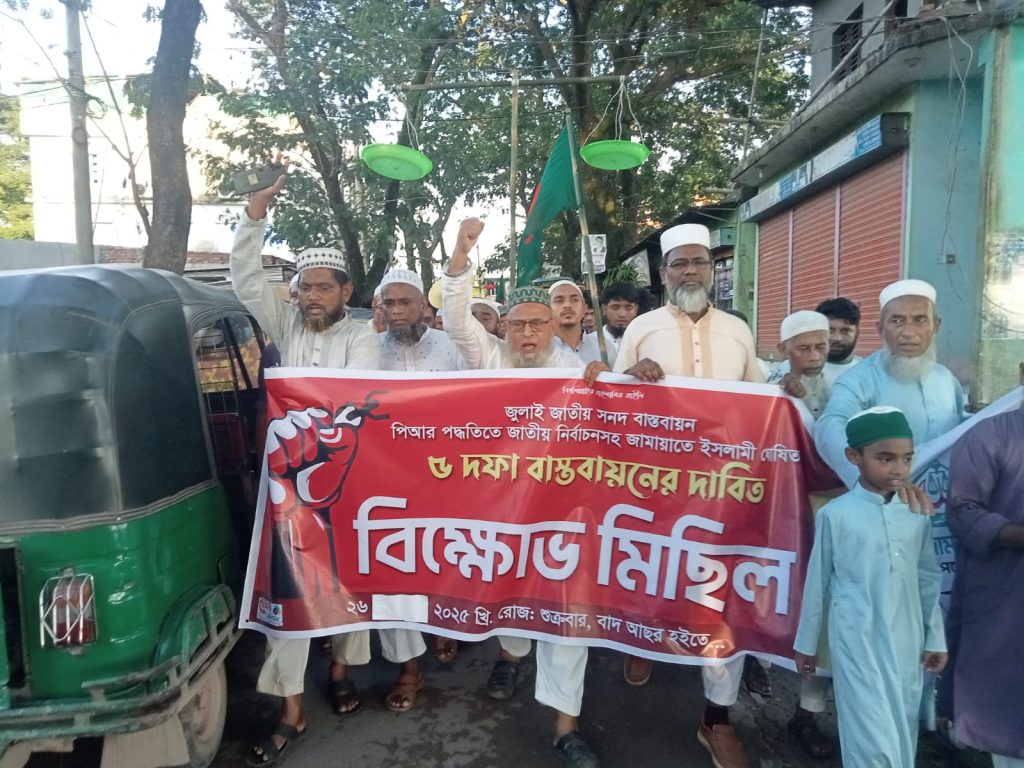 পি আর ছাড়া নির্বাচন মানি না, মানবো না—এই স্লোগানকে সামনে রেখে বাংলাদেশ জামায়তে ইসলামী মেঘনা উপজেলা শাখার উদ্যোগে বিক্ষোভ মিছিল ও সমাবেশ অনুষ্ঠিত হয়েছে।