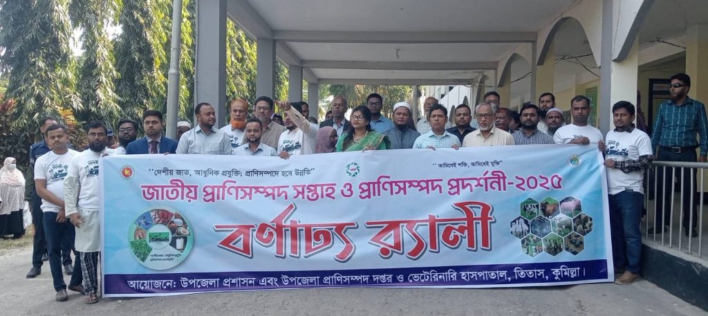 জাতীয় প্রাণিসম্পদ সপ্তাহ ও প্রাণিসম্পদ প্রদর্শনী–২০২৫ উপলক্ষে কুমিল্লার তিতাস উপজেলায় অনুষ্ঠিত হয়েছে বর্ণাঢ্য র‍্যালী ও উদ্বোধনী অনুষ্ঠান। উপজেলা প্রশাসন, উপজেলা প্রাণিসম্পদ দপ্তর ও ভেটেরিনারি হাসপাতালের যৌথ উদ্যোগে বুধবার সকালে র‍্যালীটি উপজেলা প্রাঙ্গণ থেকে শুরু হয়ে বিভিন্ন সড়ক প্রদক্ষিণ করে পুনরায় প্রদর্শনী স্থলে গিয়ে শেষ হয়।