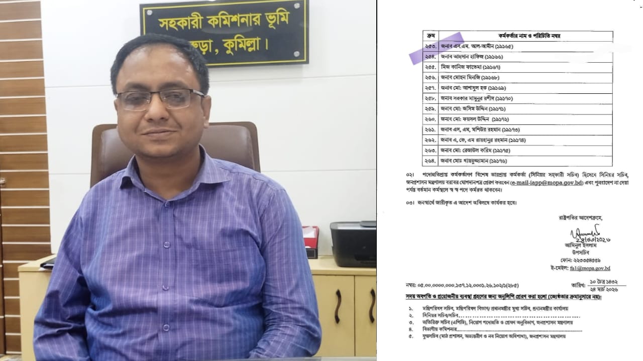 উপসচিব আমিনুল ইসলাম স্বাক্ষরিত আদেশে উল্লেখ করা হয়, জনস্বার্থে জারিকৃত এই সিদ্ধান্ত অবিলম্বে কার্যকর হবে। একই সঙ্গে সংশ্লিষ্ট কর্মকর্তাদের তাদের যোগদানপত্র ই-মেইলের মাধ্যমে (e-mail-iapp@mopa.gov.bd