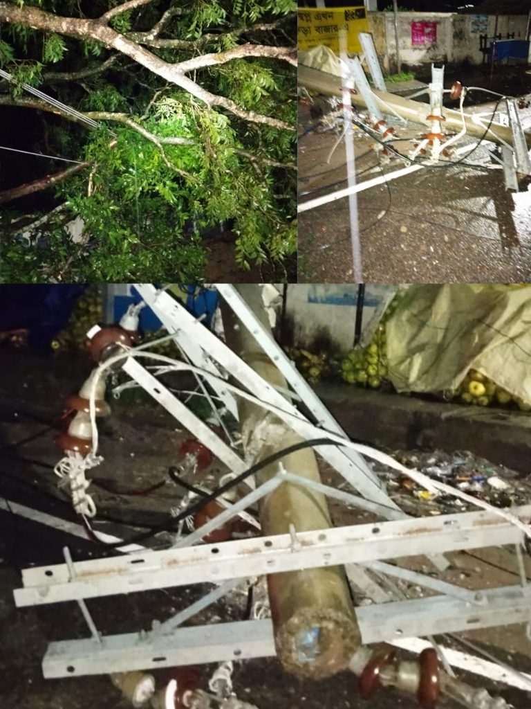 কুমিল্লার বরুড়ায় ঘূর্ণিঝড়ের প্রভাবে ঝোড়ো হাওয়ায় বিভিন্ন এলাকায় বৈদ্যুতিক খুঁটি উপড়ে পড়ায় বিদ্যুৎ বিচ্ছিন্ন হয়ে পড়েছে।