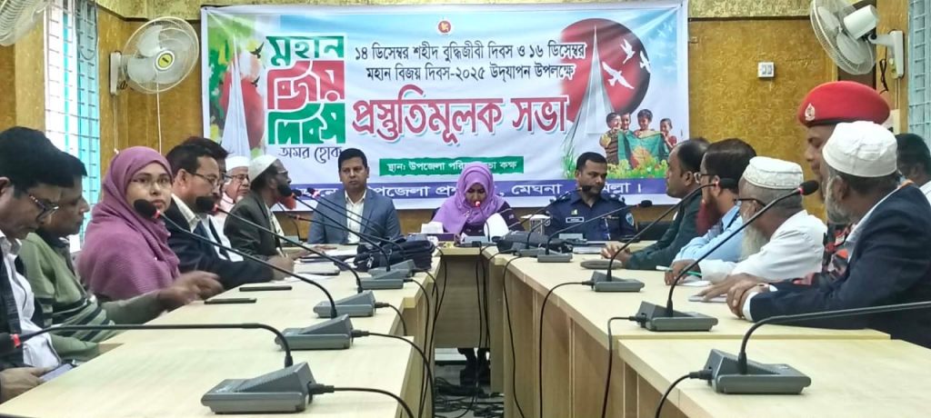কুমিল্লা মেঘনা উপজেলায় প্রশাসনের উদ্যোগে শহীদ বুদ্ধিজীবী দিবস ও মহান বিজয় দিবস যথাযোগ্য মর্যাদায় উদযাপন উপলক্ষে প্রস্তুতিমূলক আলোচনা সভা অনুষ্ঠিত হয়েছে।