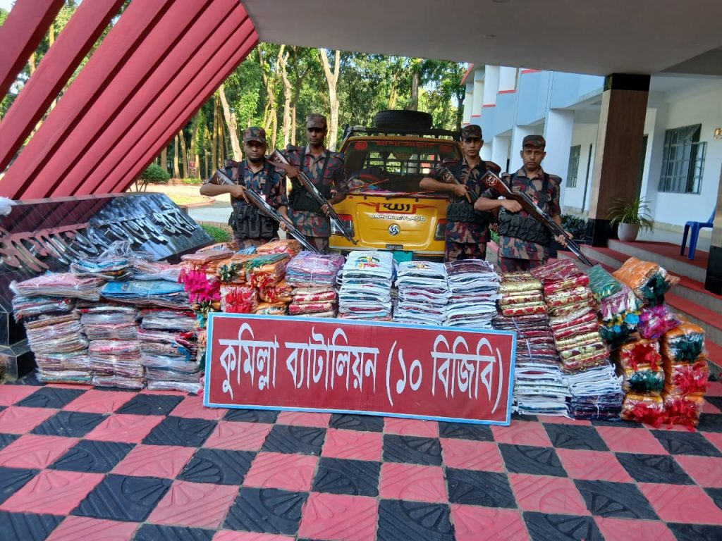 কুমিল্লা জেলার সীমান্ত এলাকায় অভিযান চালিয়ে ৬৮ লাখ ৩৮ হাজার টাকার ভারতীয় বিভিন্ন প্রকার শাড়ী ও শাল জব্দ করেছে কুমিল্লা ব্যাটালিয়ন (১০ বিজিবি)।