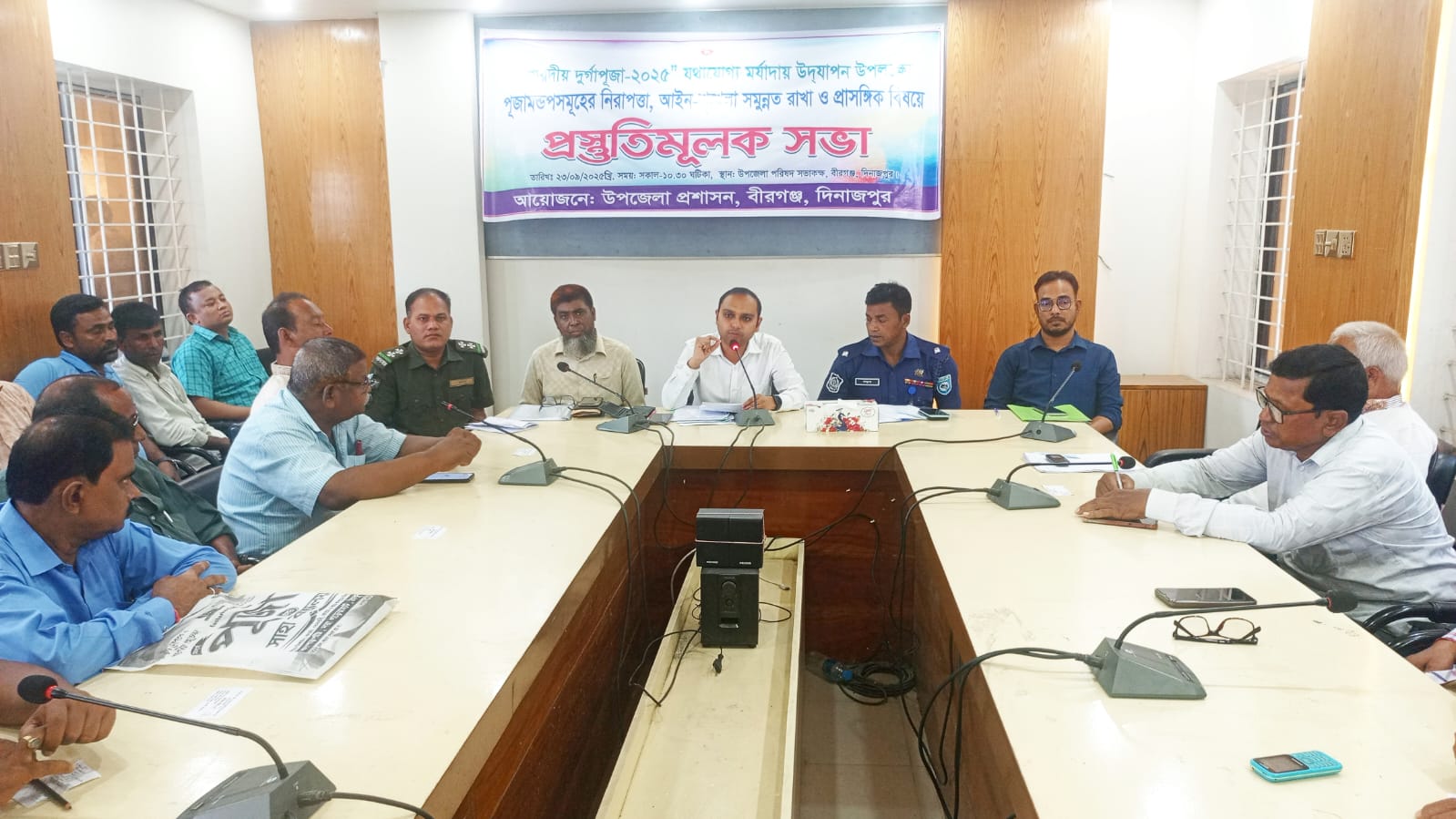 দিনাজপুরের বীরগঞ্জে আসন্ন শারদীয় দুর্গাপূজা শান্তিপূর্ণভাবে উদযাপনের লক্ষ্যে পূজামণ্ডপগুলোতে নিরাপত্তা নিশ্চিত ও আইনশৃঙ্খলা বজায় রাখার জন্য মঙ্গলবার (২৩ সেপ্টেম্বর) উপজেলা পরিষদ সভাকক্ষে প্রস্তুতিমূলক সভা অনুষ্ঠিত হয়েছে।