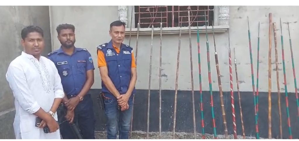 ব্রাহ্মণবাড়িয়া জেলার বিজয়নগর উপজেলার চর ইসলামপুর ইউনিয়নের নাজিরাড়িতে পূর্ব বিরোধের জেড়ে নতুন করে দেশীয় অস্ত্র মজুদ করছে, গোপন সংবাদের ভিত্তিতে এমন খবর পেয়ে বিজয়নগর থানার অফিসার্স ইনচার্জ এর দিক নির্দেশনায় এসআই মনির হোসেনের নেতৃত্বে সঙ্গীয় ফোর্স নাজিরাবাড়িতে শুক্রবার বিকালে অভিযান পরিচালান করেন , এই সময় বিপুল পরিমান দেশীয় অস্ত্র উদ্ধার করা হয়। অস্ত্র গুলোর মধ্যে রয়েছে ট্যাডা, বল্লম, এক কাইট্রা, রামদা সহ আরো অন্যান্য দেশীয় অস্ত্র। গত ফেব্রুয়ারী মাসের শুরুর দিকে একটি রক্তক্ষয়ী সংঘর্ষ হয় এতে বেশ কয়েকজন গুরুত্বর আহত হয়।উক্ত ঘটনার ধারাবাহিকতায় নতুন করে আবার ও সংঘর্ষের জন্য এই সব দেশীয় অস্ত্র মজুদ করে রেখেছে উভয় পক্ষ।