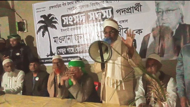 আসন্ন নির্বাচনকে কেন্দ্র করে ব্রাহ্মণবাড়িয়া-২ (সরাইল-আশুগঞ্জ) চান্দুরা ও বুধন্তী দুটি ইউনিয়ন নিয়ে গঠিত নির্বাচনী এলাকায় সরগরম হয়ে উঠেছে প্রচার-প্রচারণা। সোমবার (২ ফেব্রুয়ারি) সন্ধ্যায় চান্দুরা ইউনিয়নের বিভিন্ন গ্রামে বিএনপি জোট মনোনীত প্রার্থী মাওলানা জুনায়েদ আল হাবিবের ব্যাপক গণসংযোগ ও পথসভা অনুষ্ঠিত হয়েছে। ‘খেজুর গাছ’ মার্কা নিয়ে প্রার্থীর এই প্রচারণাকে কেন্দ্র করে স্থানীয় নেতাকর্মী ও সাধারণ মানুষের মধ্যে ব্যাপক উৎসাহ-উদ্দীপনা দেখা গেছে।