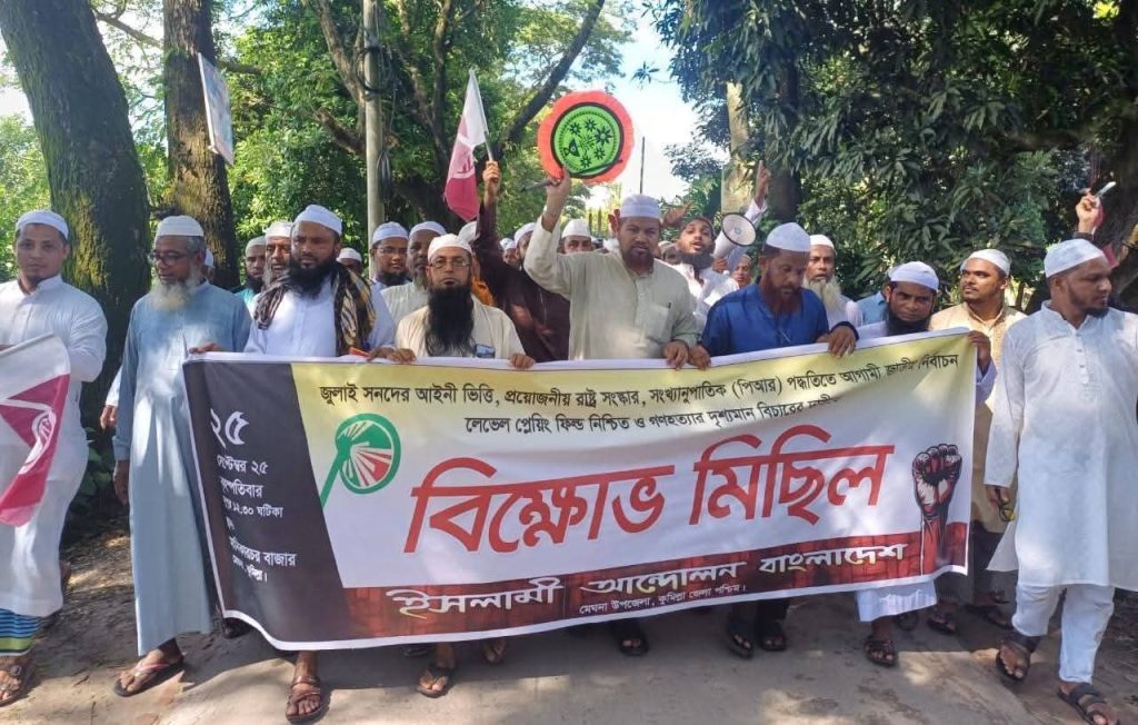 PR পদ্ধতিতে জাতীয় সংসদ নির্বাচনসহ ৫ দফা দাবিতে যুগপৎ আন্দোলনের কেন্দ্রীয় কর্মসূচির অংশ হিসেবে ইসলামী আন্দোলন বাংলাদেশ, মেঘনা উপজেলা শাখার উদ্যোগে বিক্ষোভ মিছিল অনুষ্ঠিত হয়েছে।