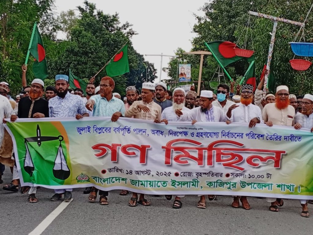 বৃহস্পতিবার ১৪ আগস্ট সকাল ১১ টায় এই মিছিলটি শুরু হয় সিরাজগঞ্জ কাজিপুর উপজেলা জামায়াতে ইসলামের কার্যালয় মেঘাই মডেল মসজিদ থেকে। মিছিলটি উপজেলার বিভিন্ন গুরুত্বপূর্ণ স্থান অতিক্রম করে আলমপুর চৌরাস্তা সামনে এসে শেষ হয়।