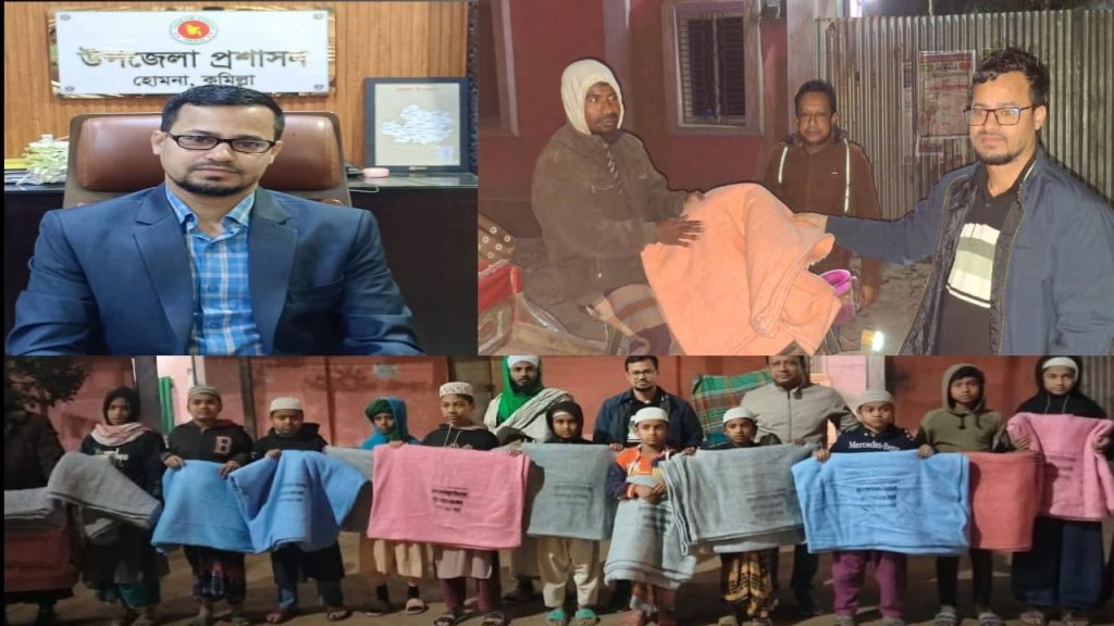 জানা গেছে, দুর্যোগ ব্যবস্থাপনা ও ত্রাণ মন্ত্রণালয়ের সহযোগিতায় হোমনা উপজেলার ৬০টি মাদ্রাসা ও এতিমখানায় মোট ২ হাজার ১৮টি কম্বল বিতরণ করা হয়েছে। পাশাপাশি সরাসরি শীতার্ত ছিন্নমূল মানুষের মাঝেও কম্বল বিতরণ করেন ইউএনও মো. শহিদুল ইসলাম।